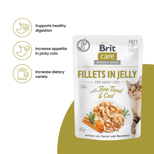 Brit Care Cat Fillets in Jelly with Fine Trout and cod 85g