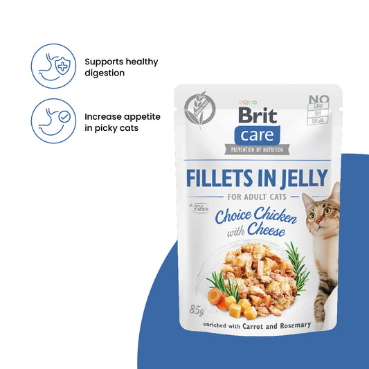 Brit Care Cat Fillets in Jelly Choice Chicken with Cheese 85g Carton (24 Pouches)