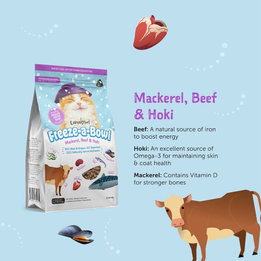 Loveabowl Cat Food Freeze-A-Bowl Mackerel Beef & Hoki 200g