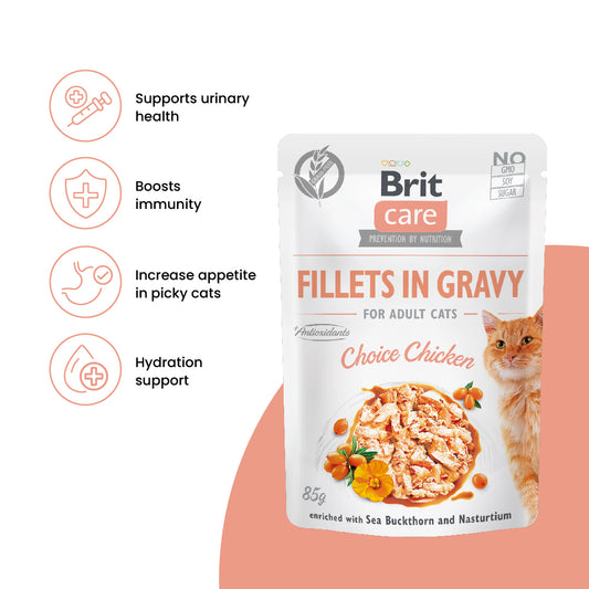 Brit Care Cat Fillets in Gravy With Choice Chicken 85g Carton (24 Pouches)