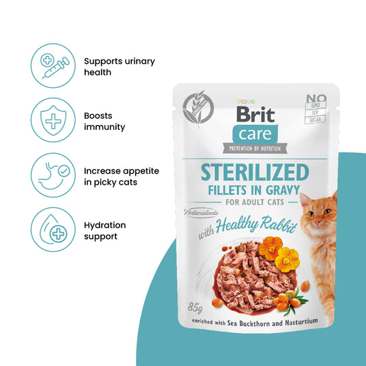 Brit Care Cat Fillets In Gravy Healthy Rabbit 85g for Sterilised Cats