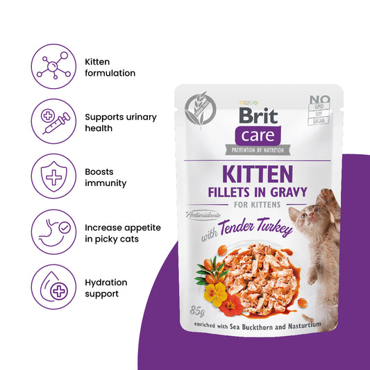 Brit Care Cat Fillets In Gravy with Tender Turkey 85g for Kitten (24 Pouches)